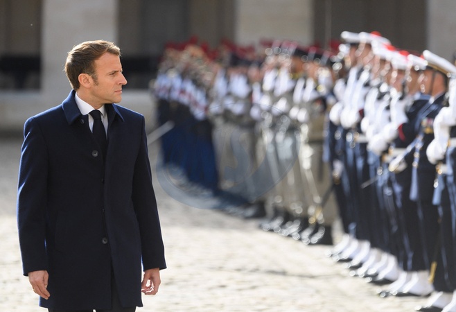 Emmanuel Macron na ceremonii wojskowej