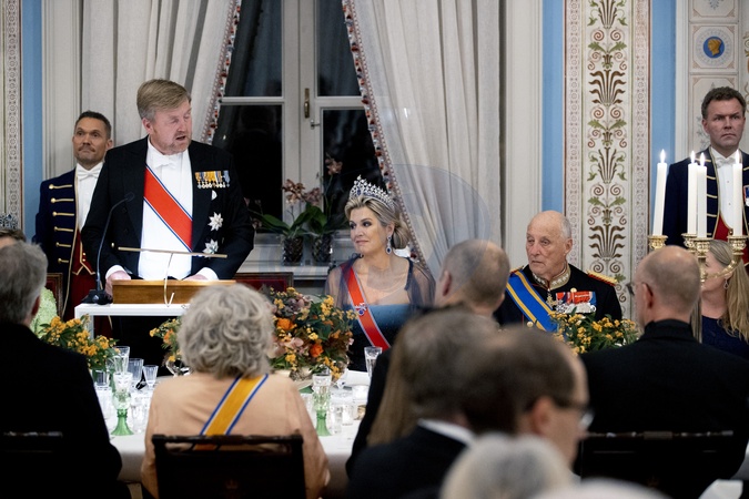 Krol Willem Alexander i krolowa Maxima na uroczystej kolacji w Norwegii