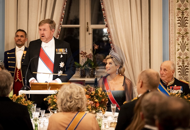 Krol Willem Alexander i krolowa Maxima na uroczystej kolacji w Norwegii
