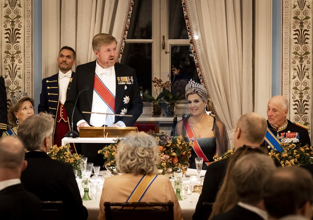 Krol Willem Alexander i krolowa Maxima na uroczystej kolacji w Norwegii