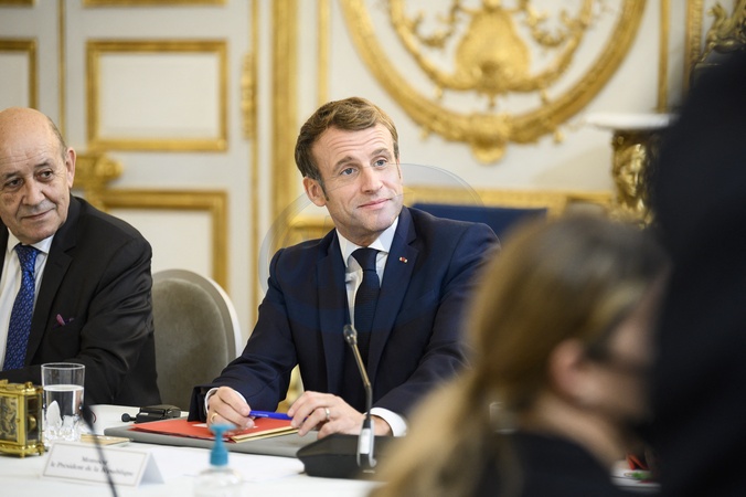 Emmanuel Macron i Kamala Harris w Palacu Elizejskim