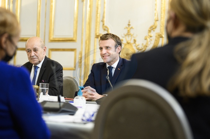 Emmanuel Macron i Kamala Harris w Palacu Elizejskim