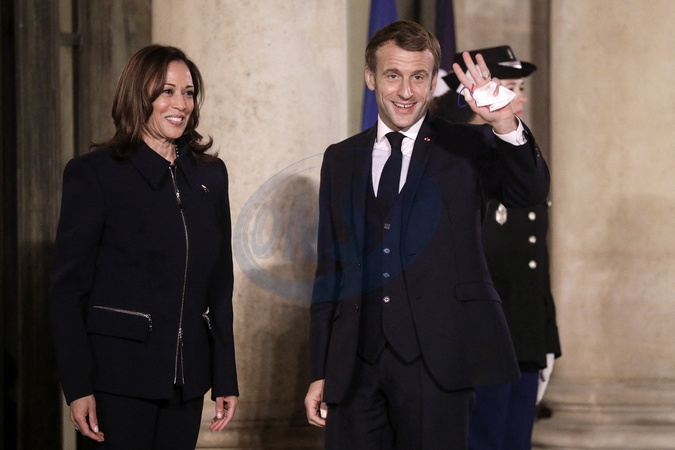 Emmanuel Macron i Kamala Harris w Palacu Elizejskim