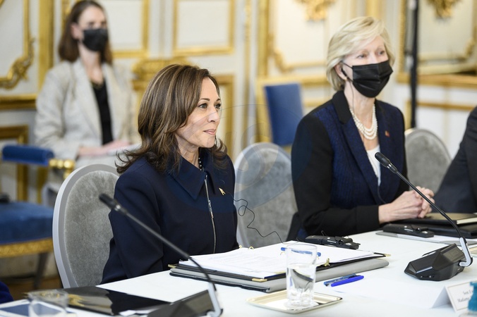 Emmanuel Macron i Kamala Harris w Palacu Elizejskim