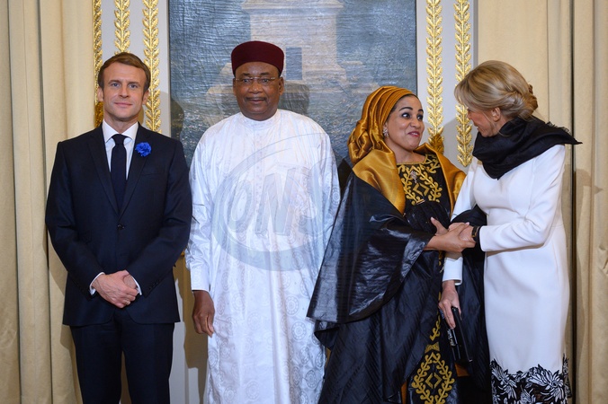 Mahamadou Issoufou z zona Lalla Malika Issoufou, Emmanuel Macron, Brigitte Macron