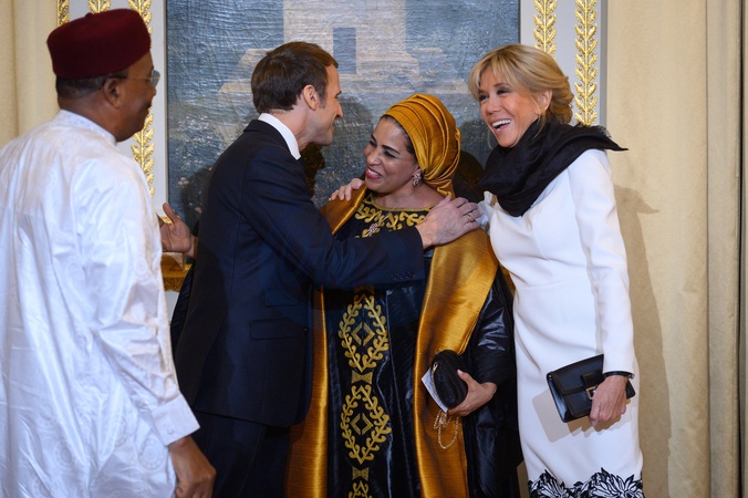 Mahamadou Issoufou z zona Lalla Malika Issoufou, Emmanuel Macron, Brigitte Macron