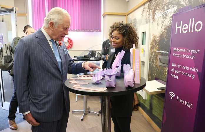 Rozbawiony ksiaze Karol podczas The Prince's Trust Young Entrepreneurs