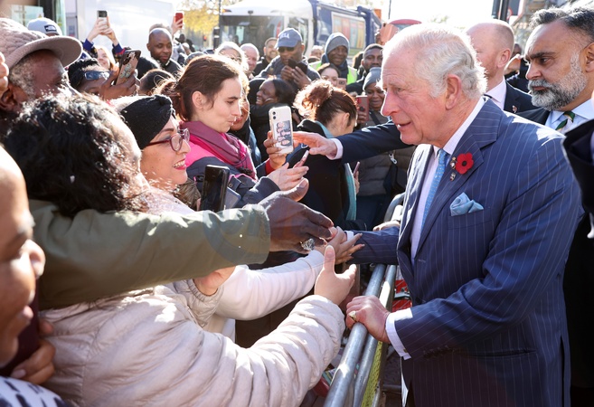 Rozbawiony ksiaze Karol podczas The Prince's Trust Young Entrepreneurs