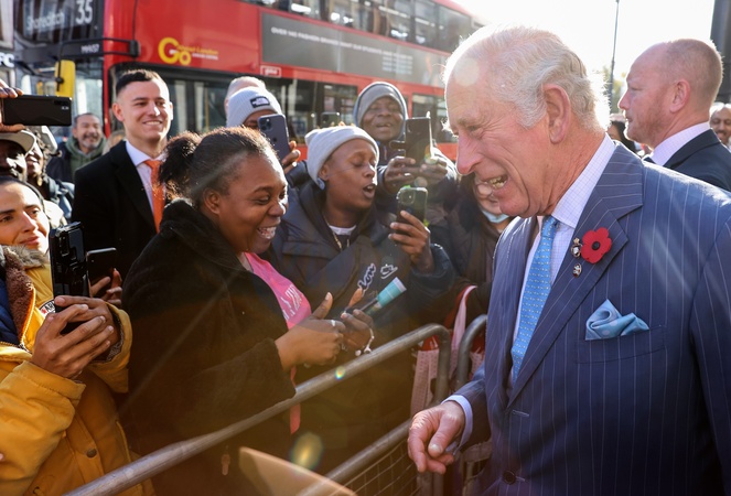 Rozbawiony ksiaze Karol podczas The Prince's Trust Young Entrepreneurs