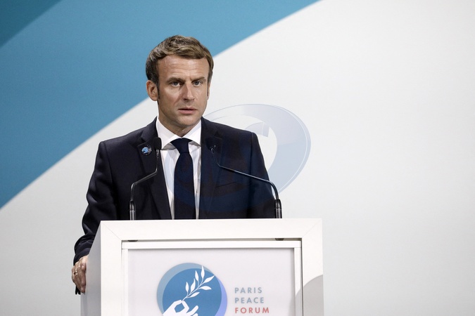 Kamala Harris i Emmanuel Macron na otwarciu Paris Peace Forum
