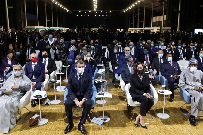 Kamala Harris i Emmanuel Macron na otwarciu Paris Peace Forum