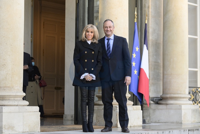 Brigitte Macron na spotkaniu z mezem Kamali Harris - Douglas Emhoff