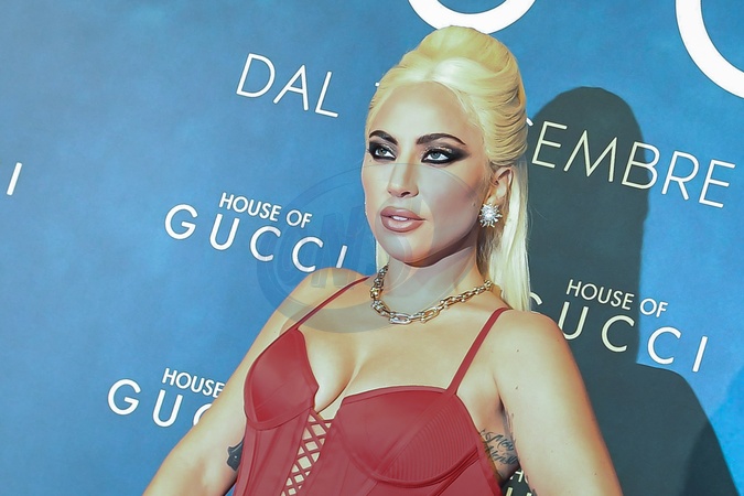 Lady Gaga w czerwieni na premierze Dom Gucci, Mediolan