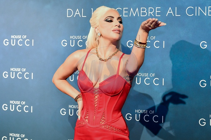 Lady Gaga w czerwieni na premierze Dom Gucci, Mediolan