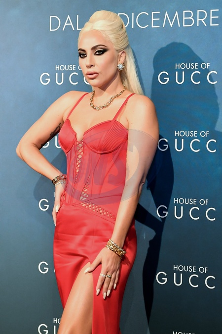 Lady Gaga w czerwieni na premierze Dom Gucci, Mediolan