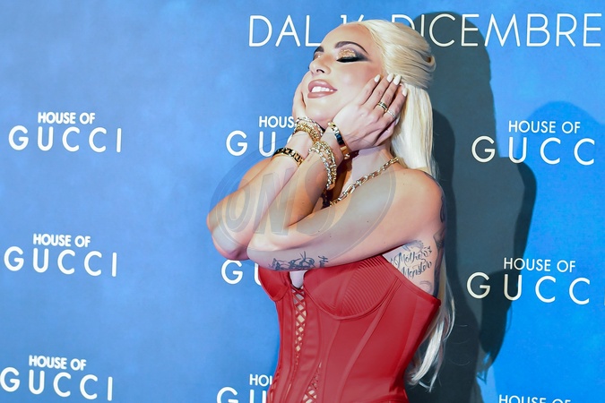 Lady Gaga w czerwieni na premierze Dom Gucci, Mediolan