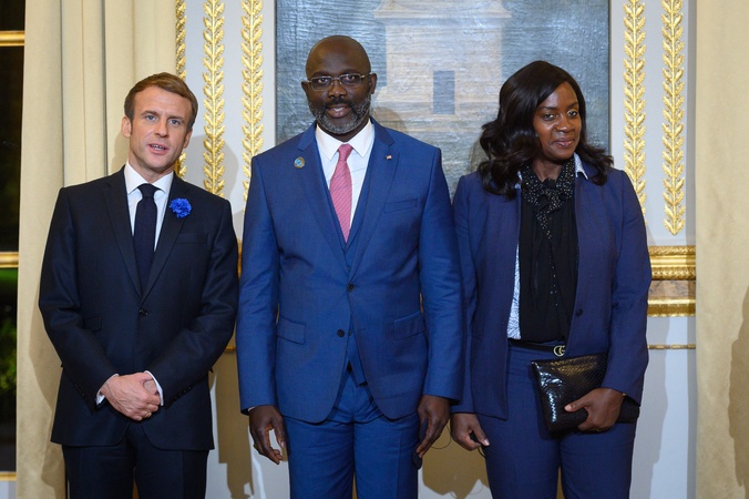 George Weah, Clar Weah, Emmanuel Macron 01.jpg