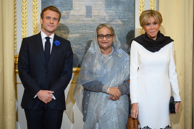 Sheikh Hasina, Emmanuel Macron, Brigitte Macron