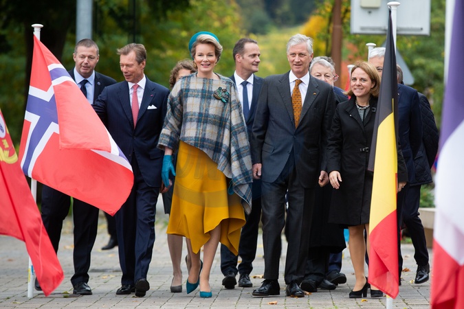 Krolowa matylda w miodowej sukience i w kraciastym poncho