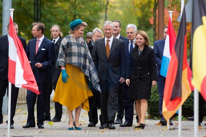 Krolowa matylda w miodowej sukience i w kraciastym poncho