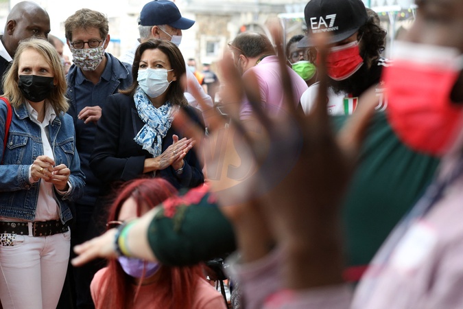 Mer Paryza Anne Hidalgo na miejskiej plazy