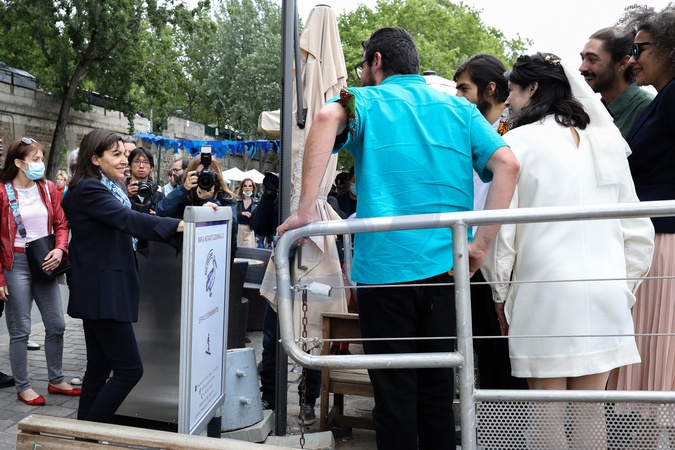 Mer Paryza Anne Hidalgo na miejskiej plazy
