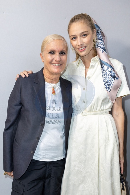 Maria Grazia Chiuri pozuje z goscmi na pokazie DIOR