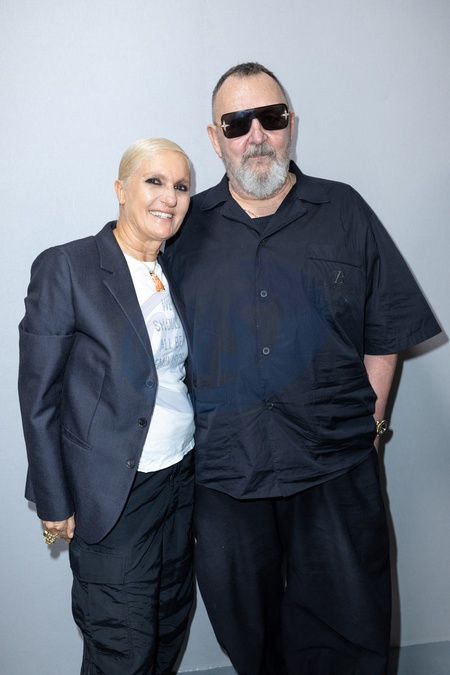 Maria Grazia Chiuri pozuje z goscmi na pokazie DIOR