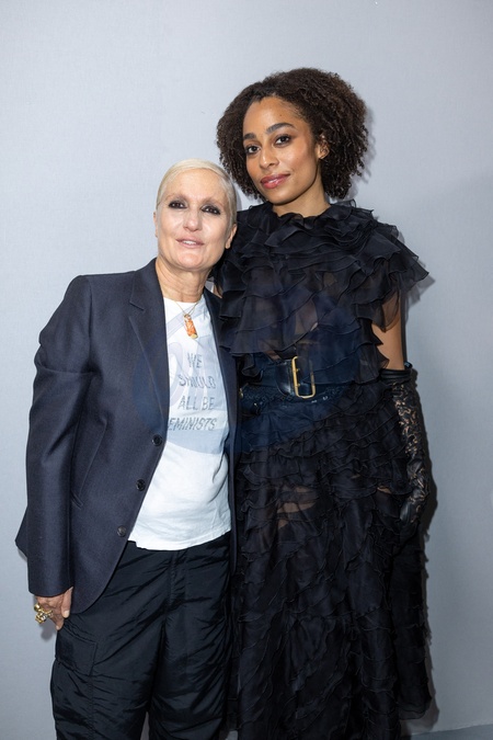 Maria Grazia Chiuri pozuje z goscmi na pokazie DIOR