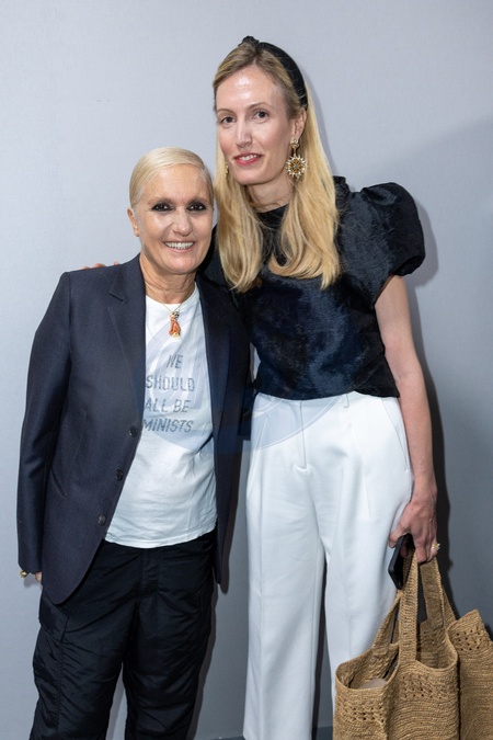 Maria Grazia Chiuri pozuje z goscmi na pokazie DIOR