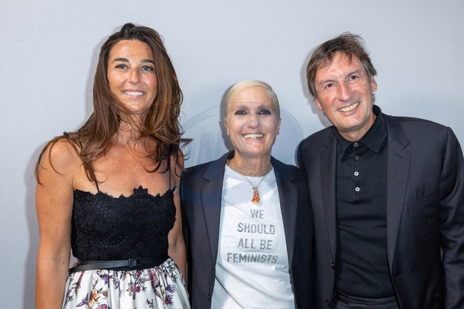 Maria Grazia Chiuri pozuje z goscmi na pokazie DIOR