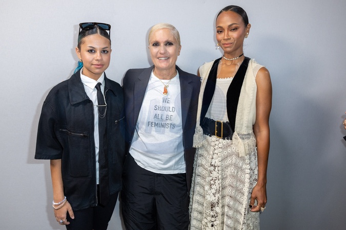 Maria Grazia Chiuri pozuje z goscmi na pokazie DIOR