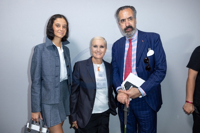 Maria Grazia Chiuri pozuje z goscmi na pokazie DIOR