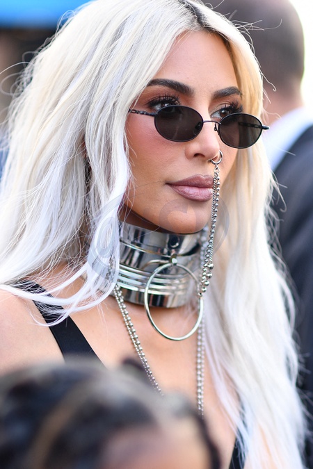 Kim Kardashian z corka North West - obie z kolczykami w nosie na lancuszku