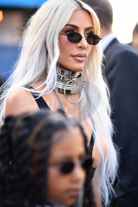 Kim Kardashian z corka North West - obie z kolczykami w nosie na lancuszku