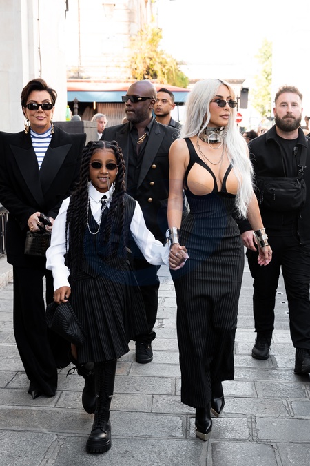 Kim Kardashian z corka North West - obie z kolczykami w nosie na lancuszku