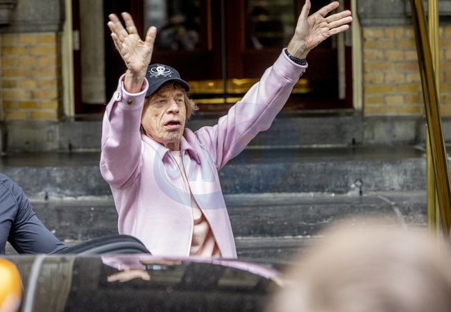 Mick Jagger wychodzi z hotelu