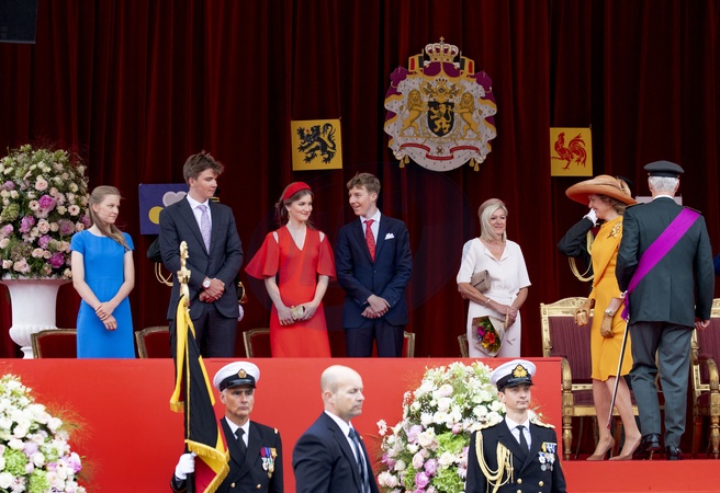 Belgijska rodzina krolewska na paradzie wojskowej
