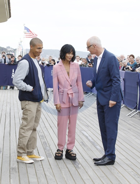 Thandiwe Newton w rozowym garniturze na Festiwalu w Deauville