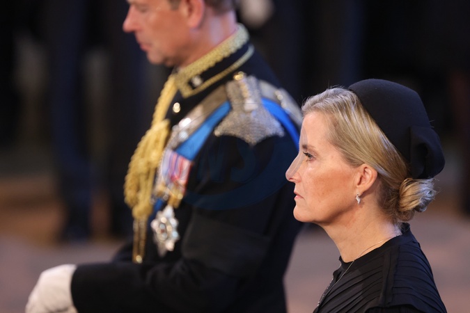Rodzina krolewska podczas przybycia trumny Krolowej Elzbiety II