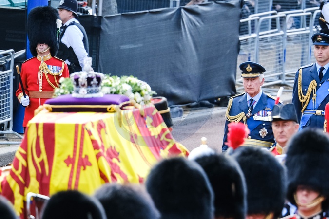 Rodzina krolewska podczas przybycia trumny Krolowej Elzbiety II