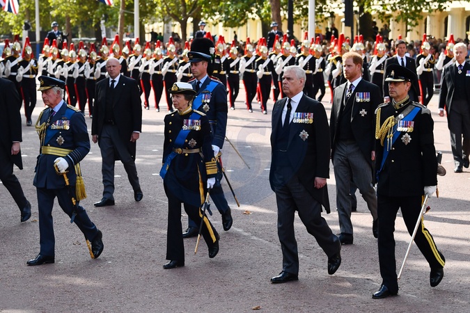 Rodzina krolewska podczas przybycia trumny Krolowej Elzbiety II