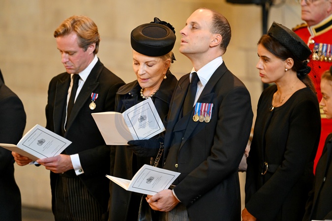 Rodzina krolewska podczas przybycia trumny Krolowej Elzbiety II