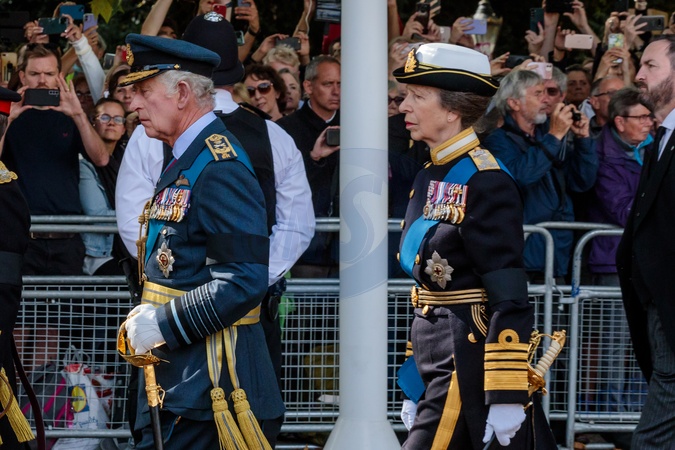 Rodzina krolewska podczas przybycia trumny Krolowej Elzbiety II