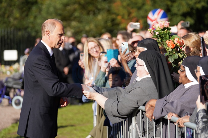 Ksiaze Edward i Sophie ogladaja kwiaty i rozmawiaja z poddanymi
