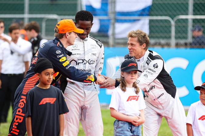 Brad_Pitt kreci film podczas Grand Prix Formula I GB