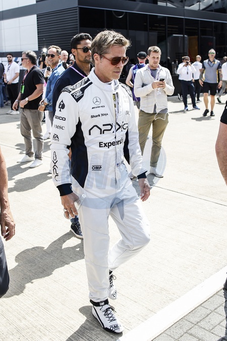 Brad_Pitt kreci film podczas Grand Prix Formula I GB