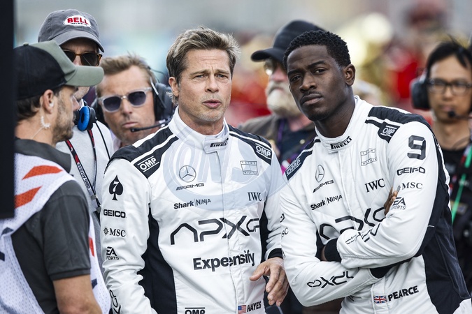 Brad_Pitt kreci film podczas Grand Prix Formula I GB