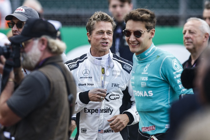 Brad_Pitt kreci film podczas Grand Prix Formula I GB