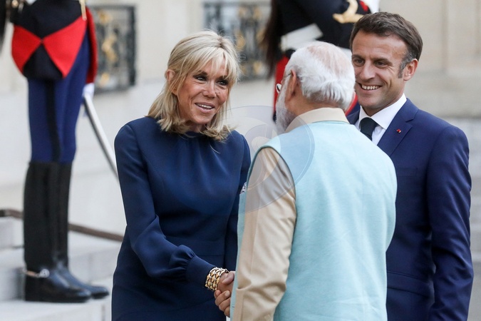 Emmanuel Macron Brigitte Macron Narendra Modi_